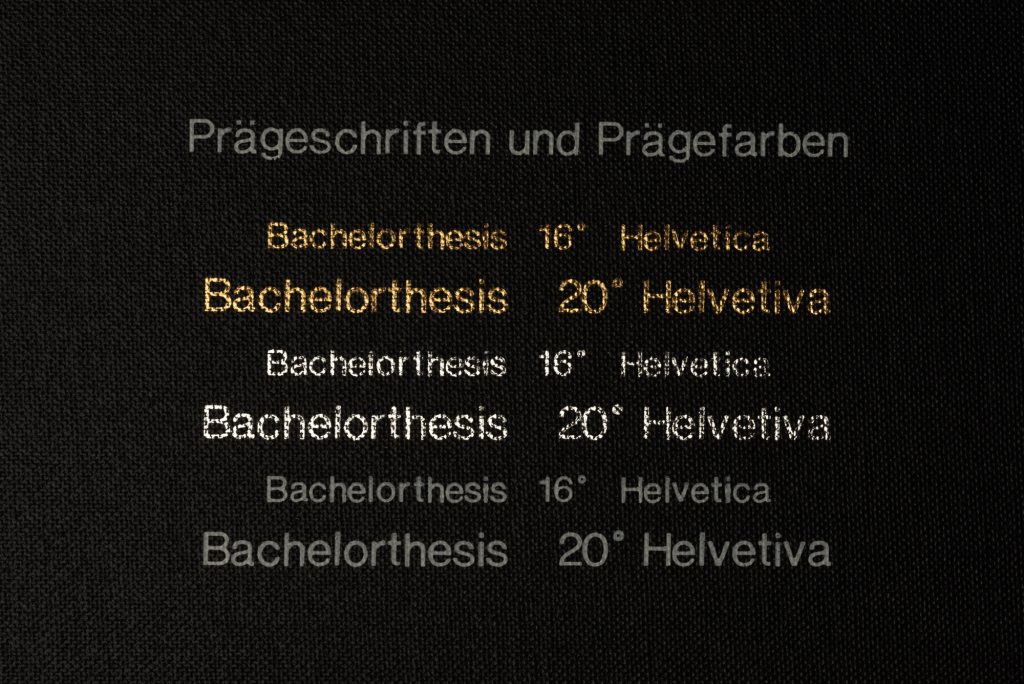Für den Deckel deiner Bachelorarbeit kannst du aus 4 unterschiedlich farbigen Leinen auswählen. Individuelle Prägemöglichkeiten runden dein persönliches Produkt ab.